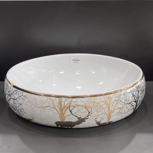 Chậu lavabo rửa mặt đặt bàn vuông men nano họa tiết ( không kèm vòi)